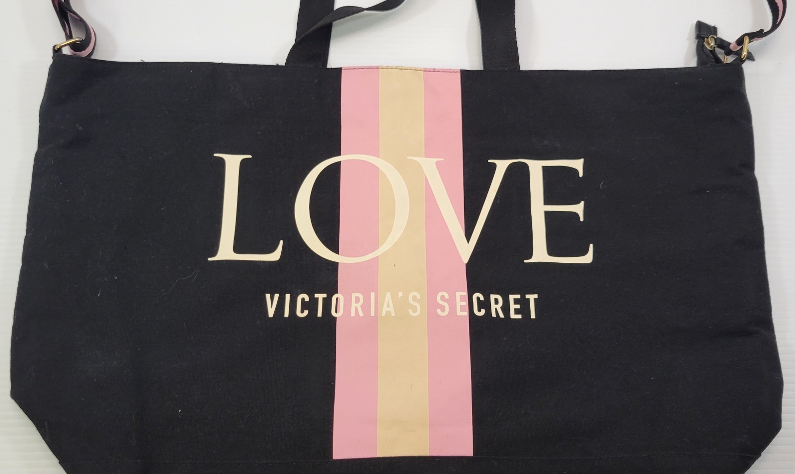 Victoria's Secret LOVE Weekender Tote Black Travel Bag