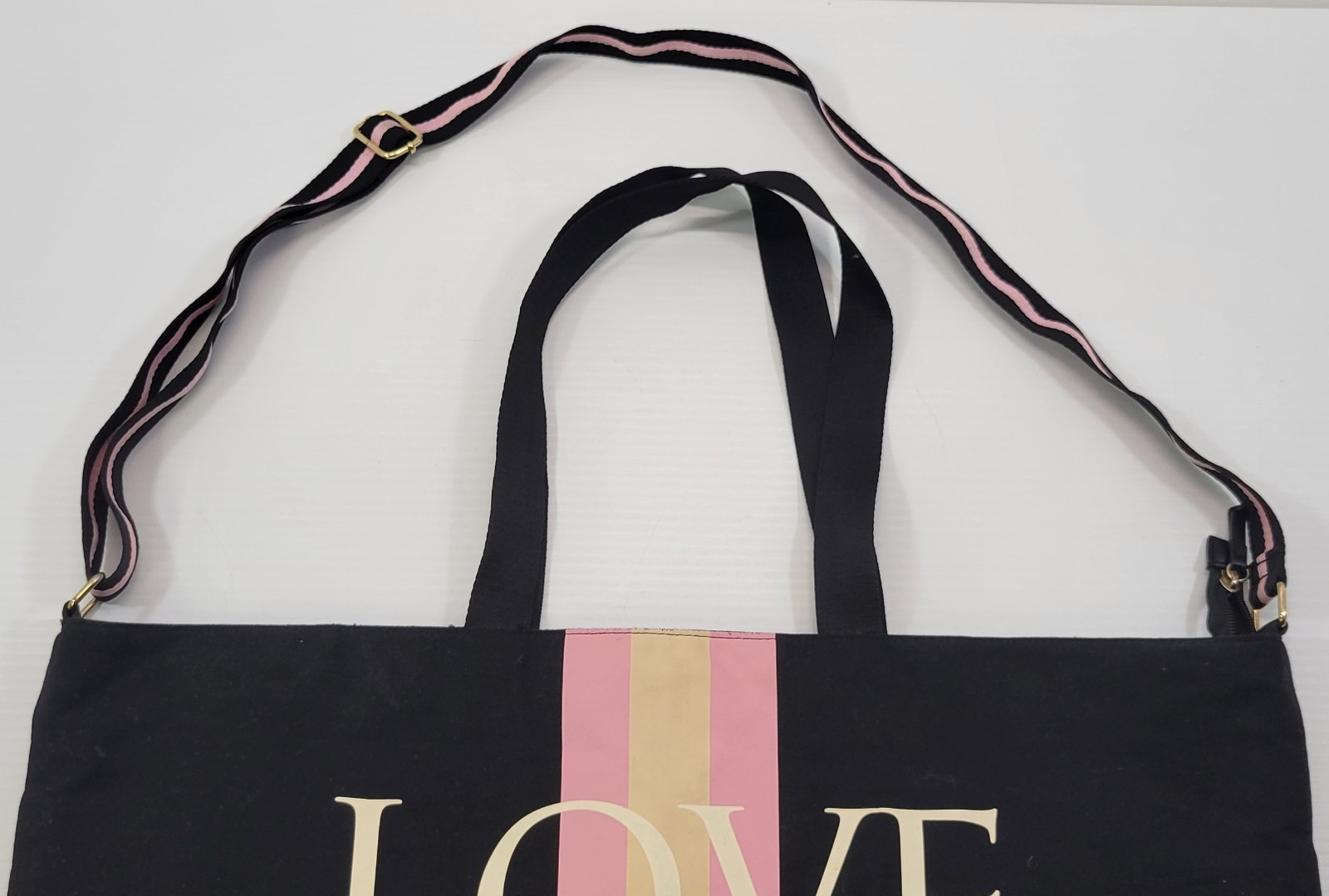 J) Victoria's Secret LOVE Weekender Tote Black Travel Bag
