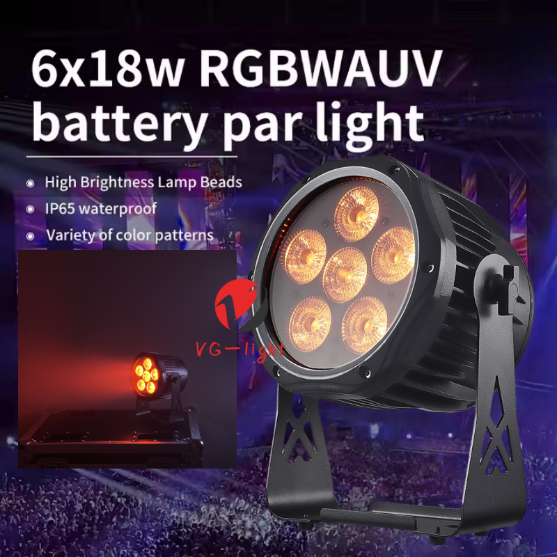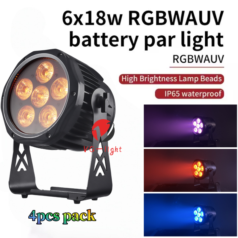 Waterproof Wireless DMX 6X18W RGBWA UV 6in1 LED Par Light Battery Power Uplight