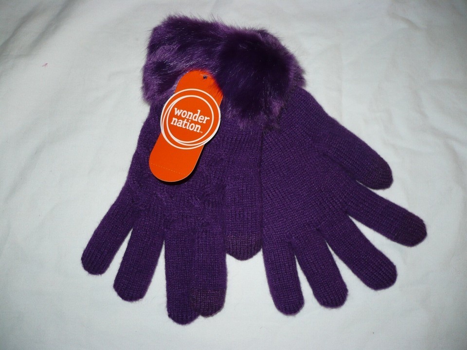Wonder Nation Girls Faux Fur Lined Gloves Pretty Purple NEW Super Warm