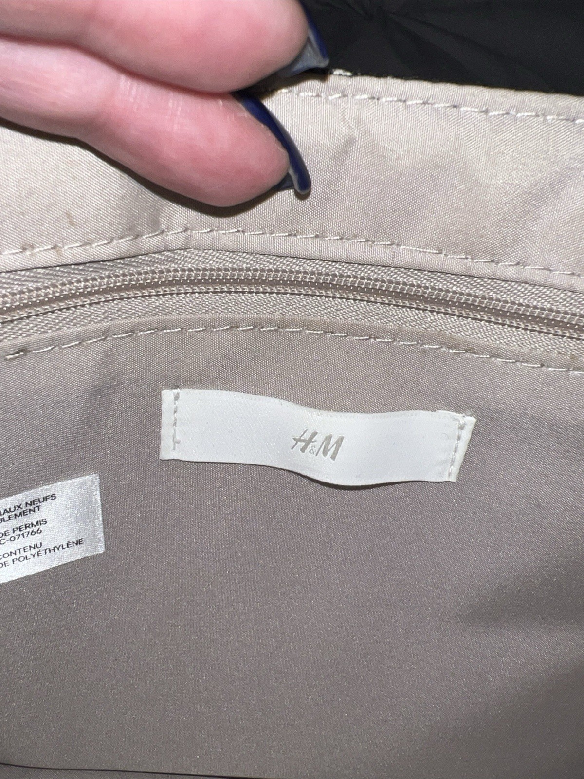 The H M Mini Tote Jacquard Tote Palm Tree Leaf Tropical Bag is a stylish and trendy accessory perfect for travel or casual occasions. This small square-shaped bag features a tropical pattern in blue with gold hardware accents. The bag comes with a crossbody strap for added convenience and a detachable strap for versatility. Made from a cotton blend exterior and fabric lining, this limited edition piece is ideal for those who love a colorful, bohemian, and tropical style. Perfect for adding a touch of beachy chic to any outfit.