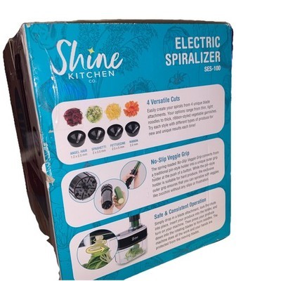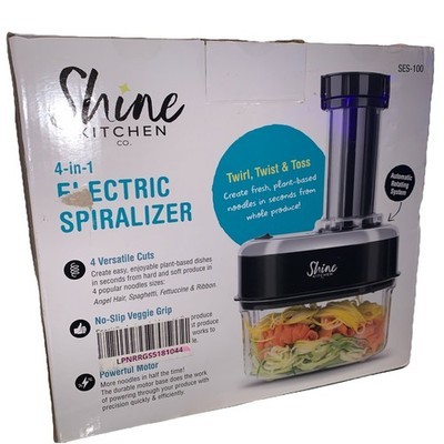 The Kitchen Co. SES-100 Electric Vegetable Spiralizer is a large, electric-powered appliance designed specifically for slicing vegetables. With a sleek black color and compact dimensions of 10.08x9.53x7.95 inches, this spiralizer weighs 4.45 pounds and is easy to handle in the kitchen. Its main function is to spiralize vegetables, making it a convenient tool for creating healthy and delicious meals with precision and ease. Perfect for home cooks looking to add variety and creativity to their dishes, this electric spiralizer is a versatile addition to any kitchen arsenal.