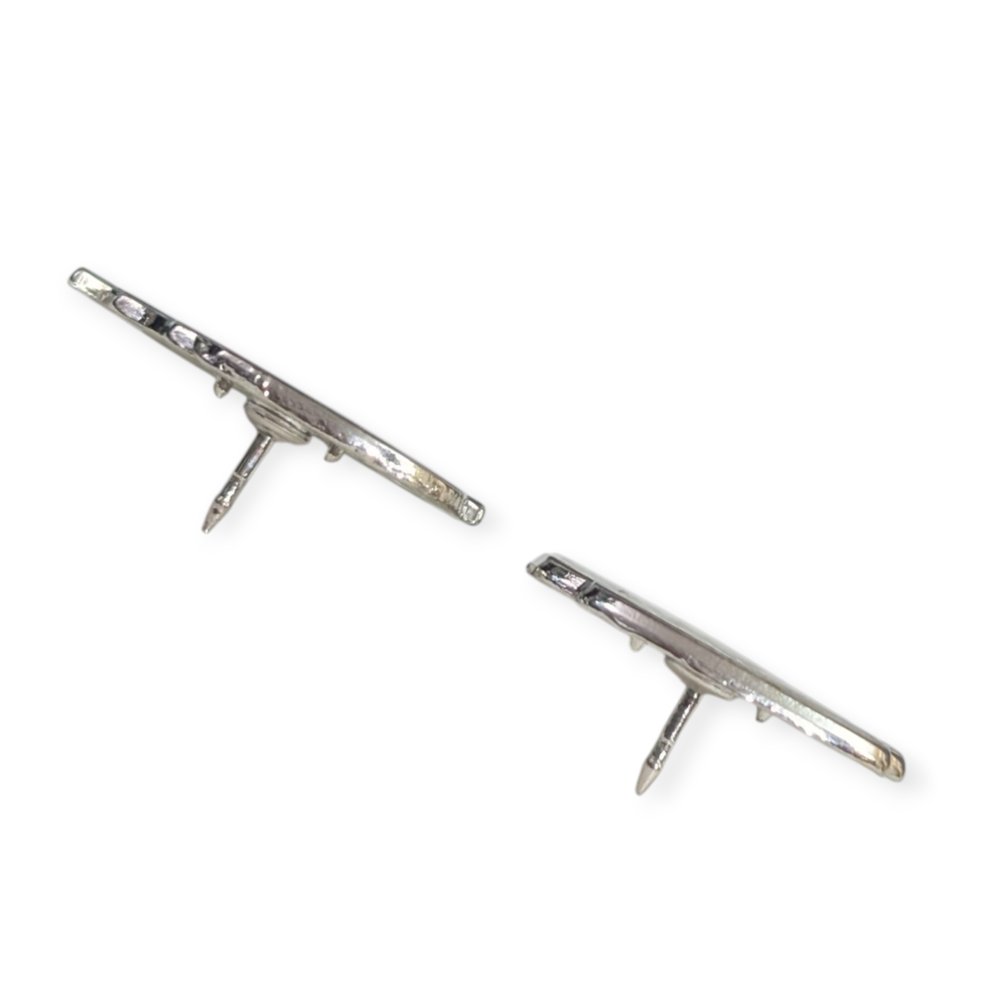 • Sculpted metal with enamel, and finished with rubber backs to keep secure.