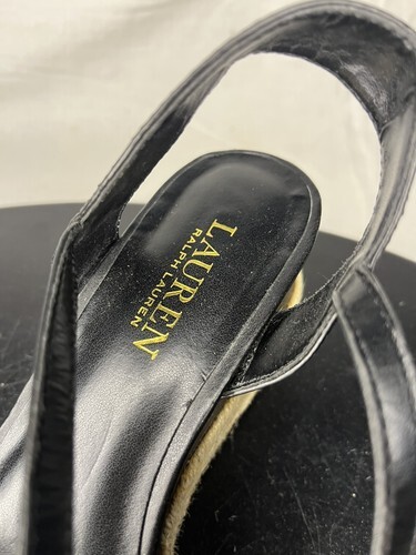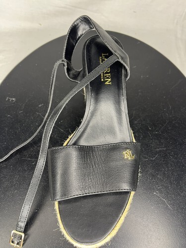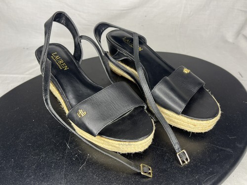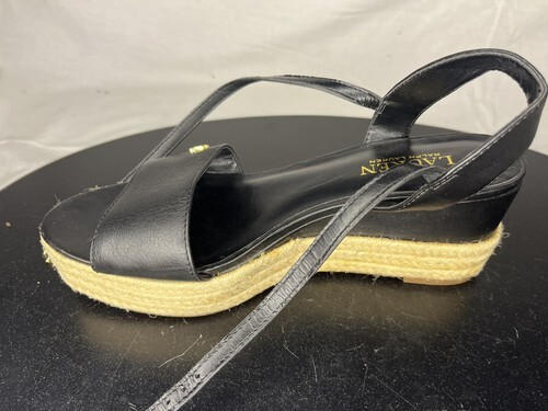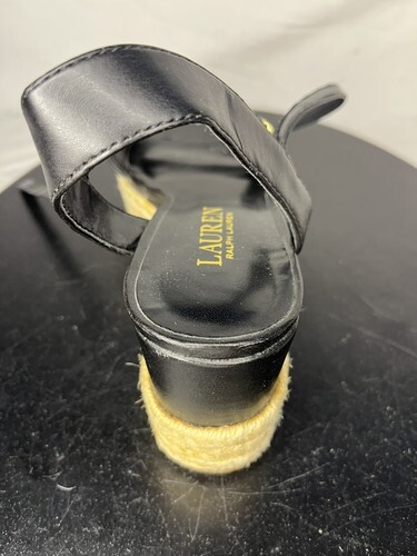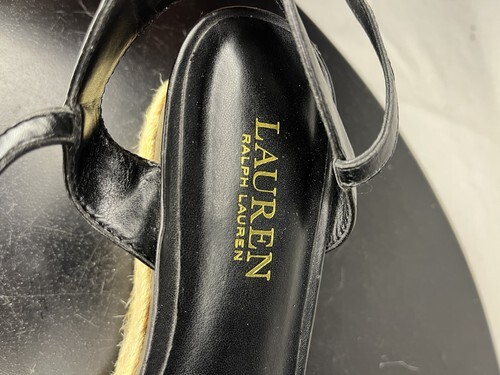 Polo Ralph Delores Espadrilles Wedge Sandals Women’s 7.5 B Black Leather