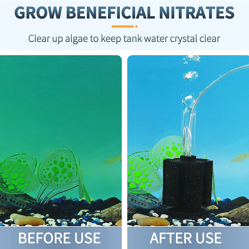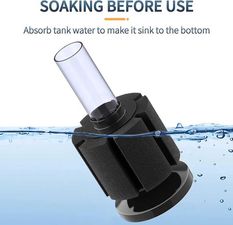 Quiet Aeration: Air powered and causing no disturbance to your daily life. Press the aquarium sponge filter into the tank to fully absorb tank water to make it sink to the bottom.