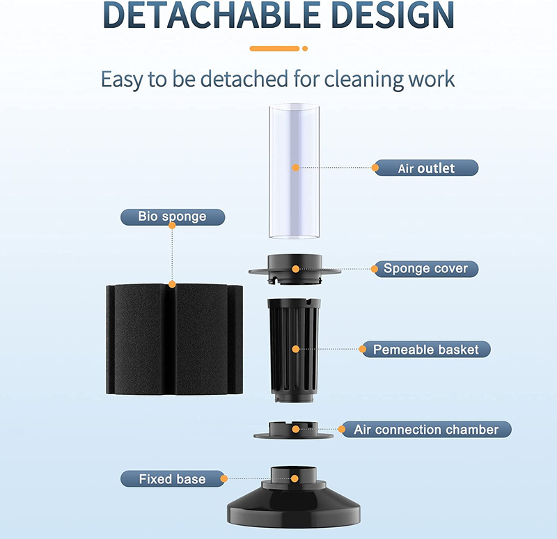 Easy to Clean: Each sponge filter can be easily detached for cleaning the dirt. Rinse it every 2 - 4 weeks with aquarium water ONLY. Avoid washing it in tap water!