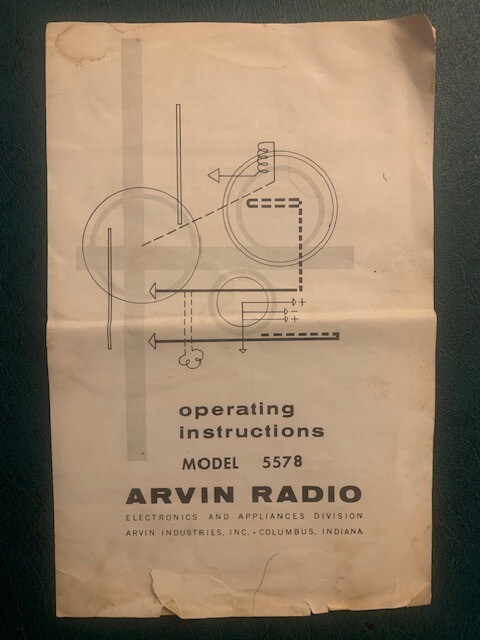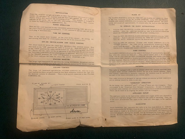 ARVIN MODEL 5578 Clock Radio Operating Instruction Manual Schematics Original Condition as shown. Please refer to images.