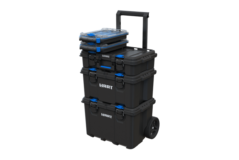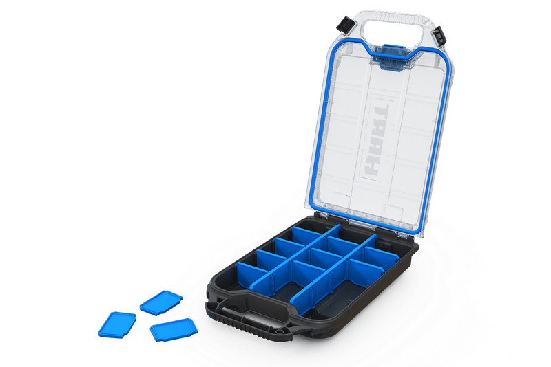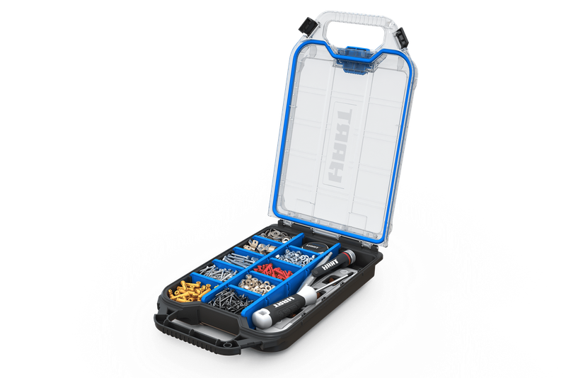 15-section adjustable dividers to customize the compartment layout Large carrying handle for convenient portability Transparent lid offers easy visibility of all your contents Perfect organizations for DIY-ers, crafters and hobbyists Can be easily stacked on to any of the storage units within the HART Stack System IP54 seal protects your tools from dust, moisture, and accidental contact with water ? making it ideal for any use