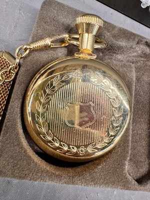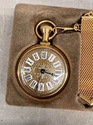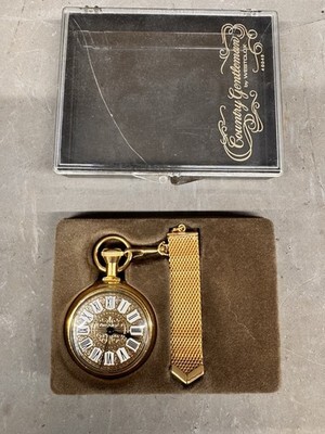 Vintage 1970s Westclox Country Gentleman Gold Pocket Watch Mechanical Case Lapel