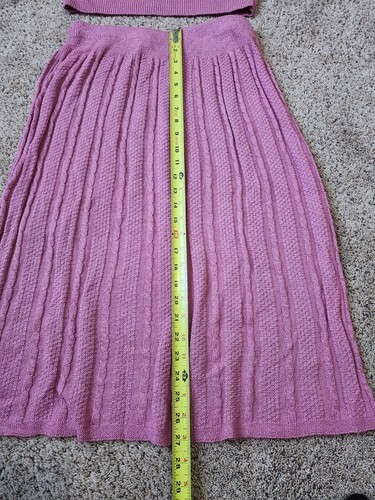 Vintage 70-80s Boho Pink Muave Knit Skirt Midi & Sweater 2pc Set Small