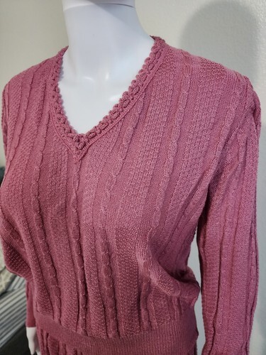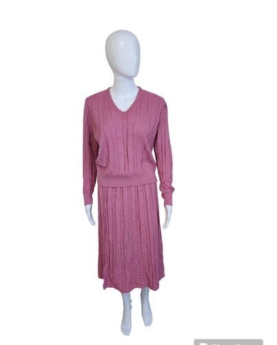 Vintage 1970-80s Pink Muave Knit Skirt Sweater 2pc Set