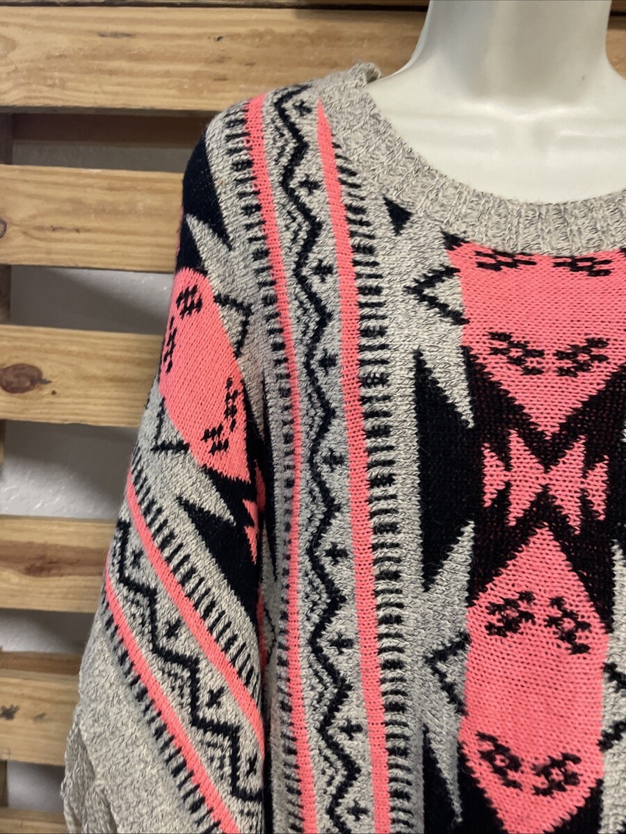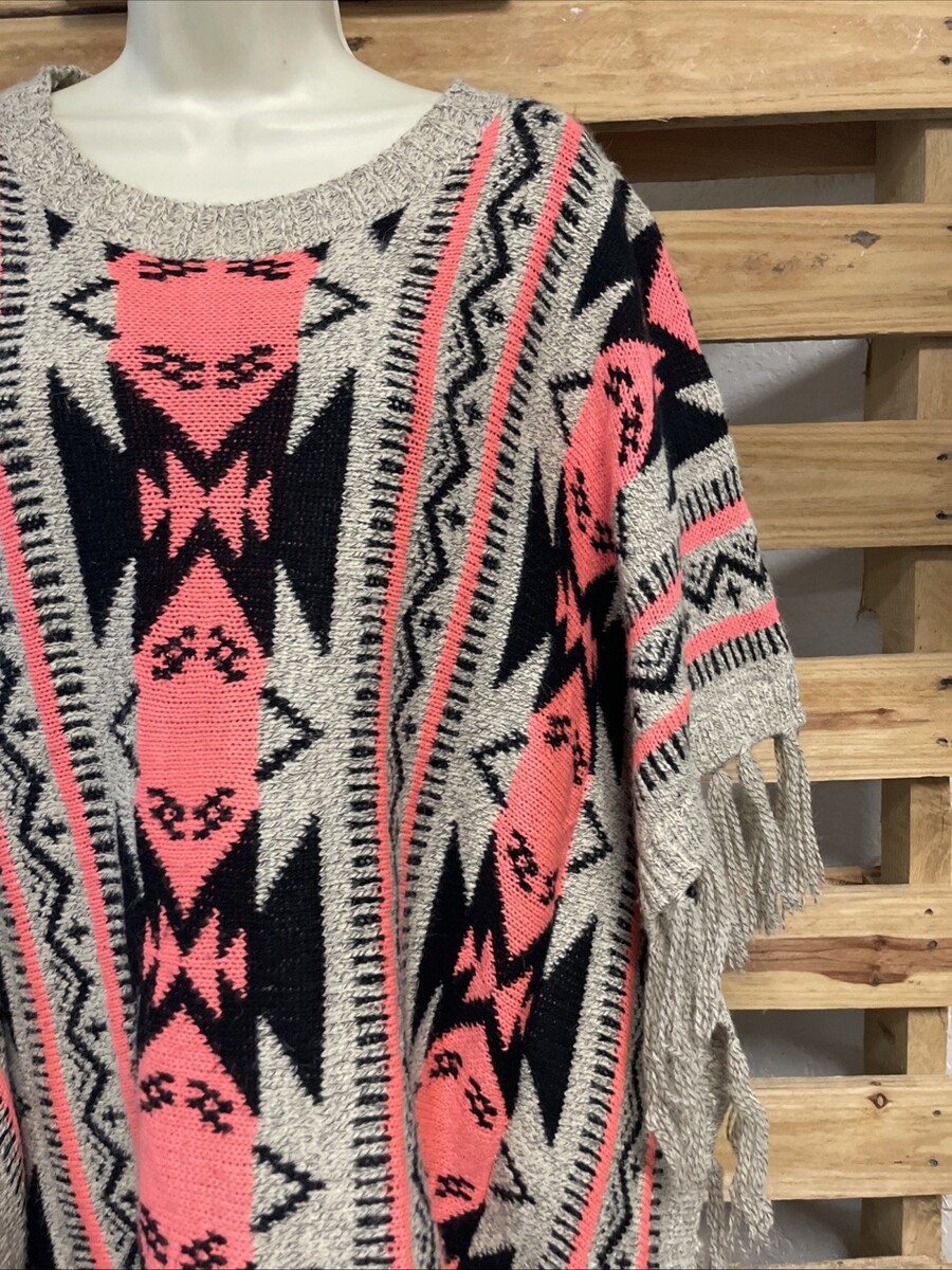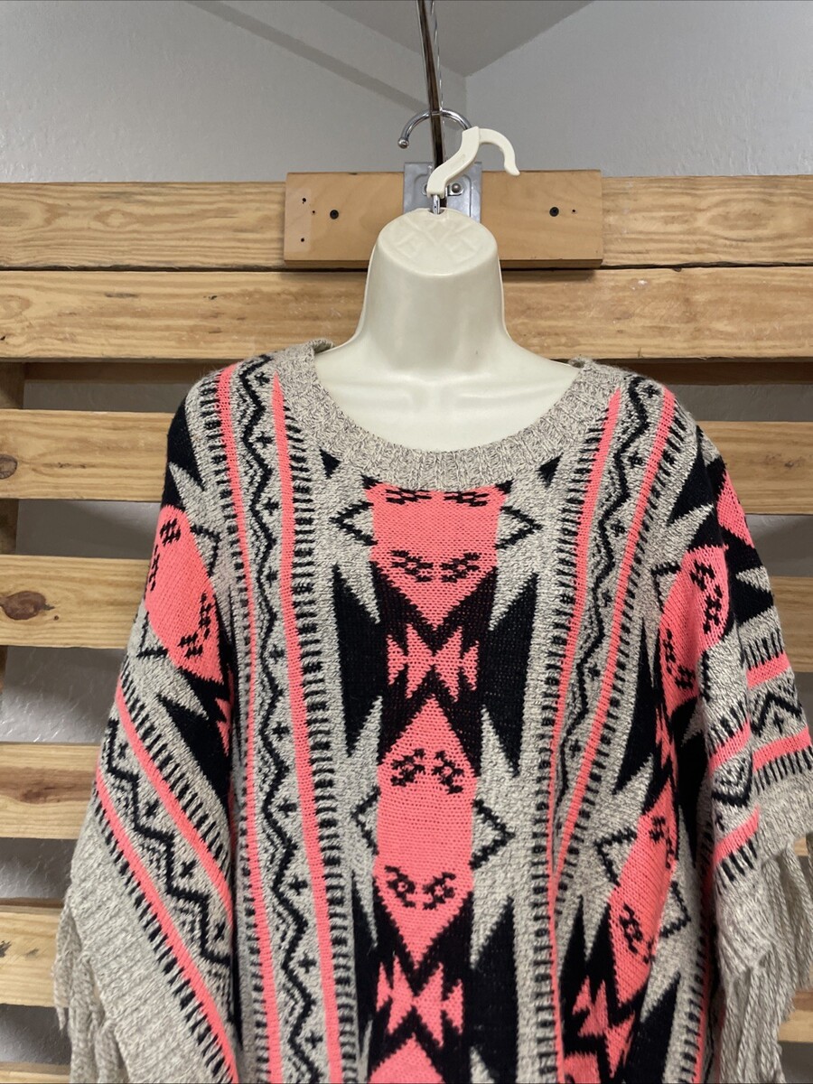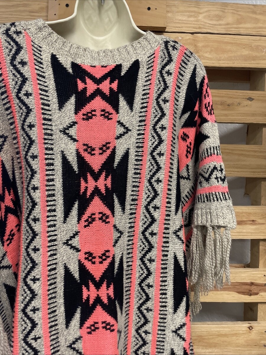 Soho Apparel Womens Sweater Poncho Size Small Fringed Trim Aztec Print KG JD