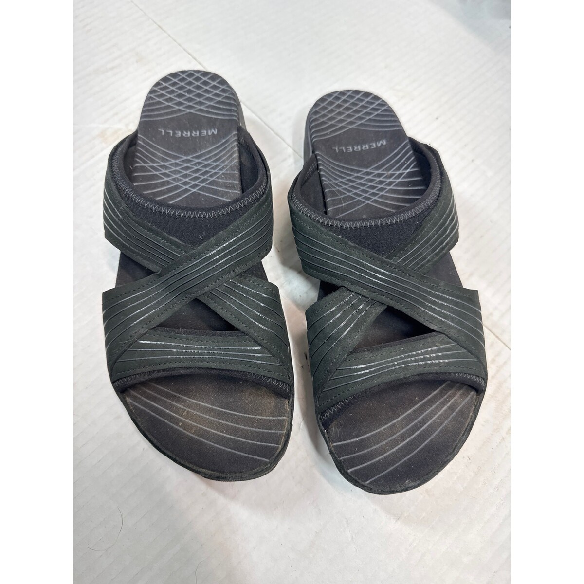 Merrell Black Criss Cross Leather Slip-On Sandals Womens Size 8