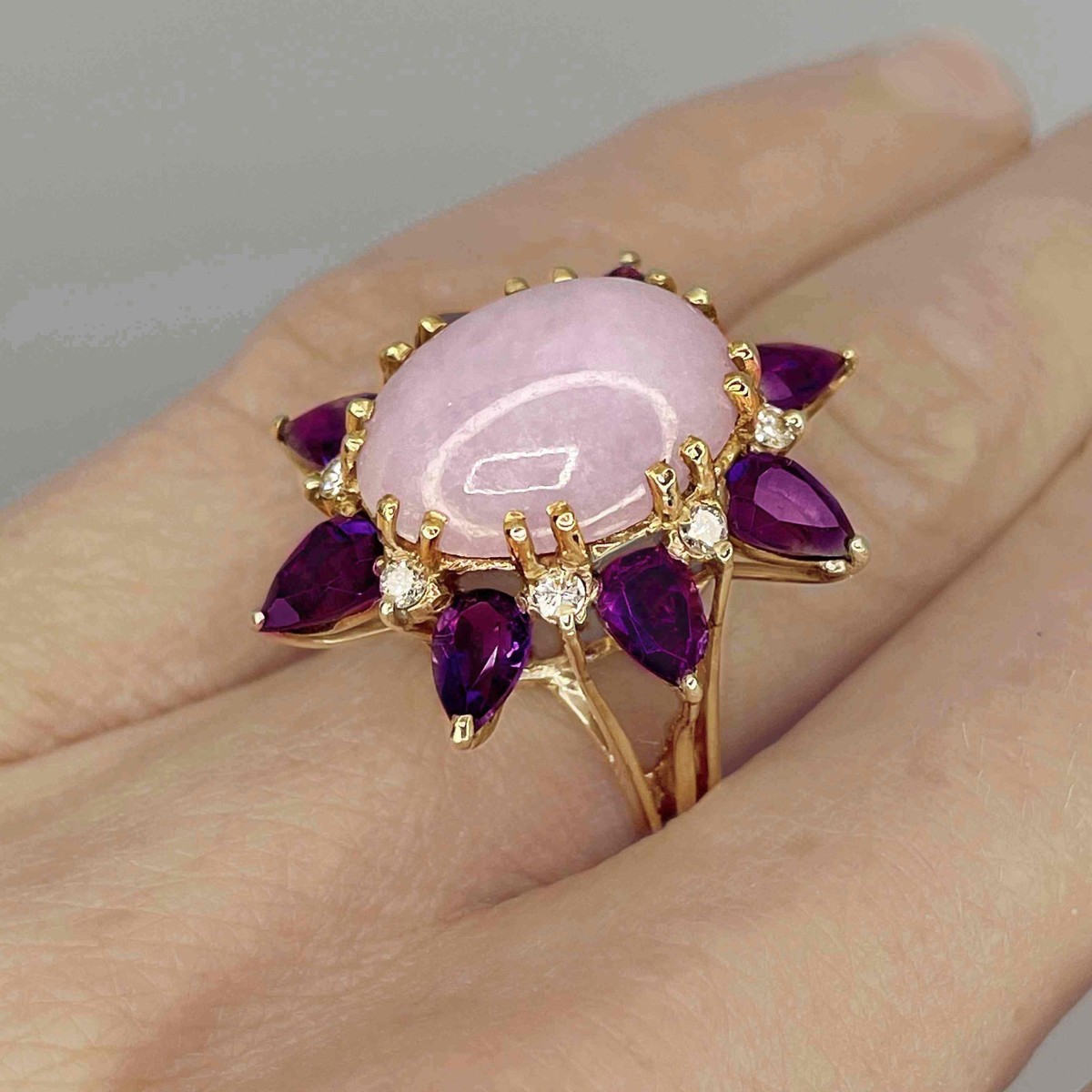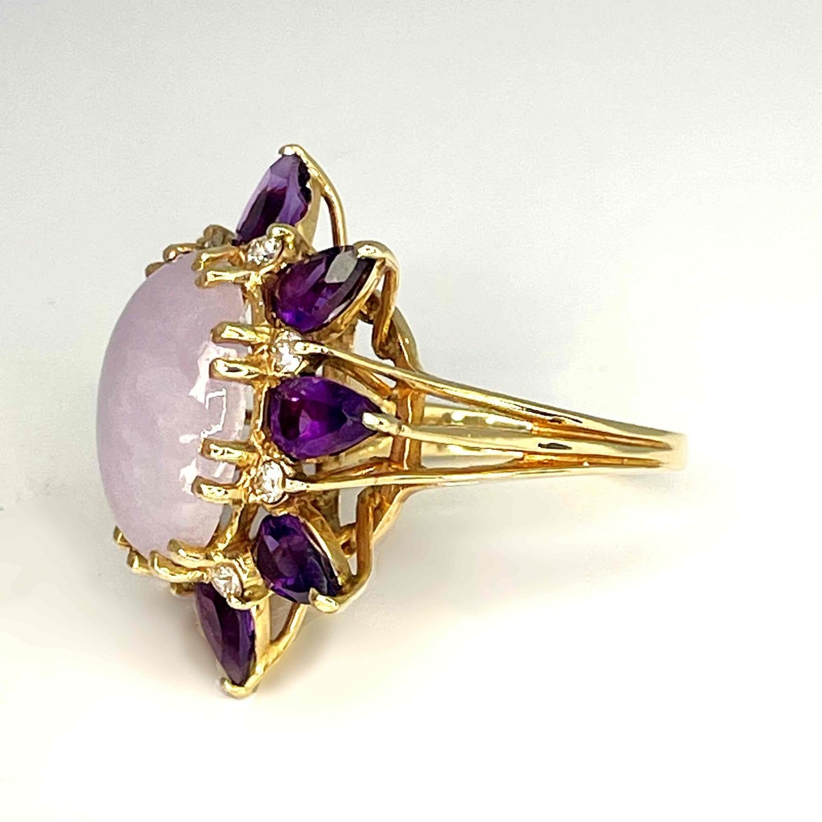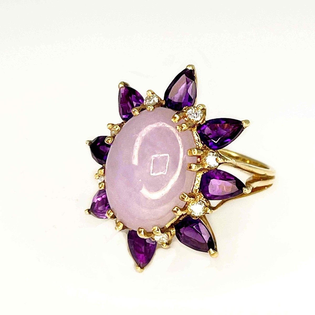 HUGE UNTREATED LAVENDER Jade Diamond 14K Flower Ring 9 CARAT JADE! + GEM REPORT