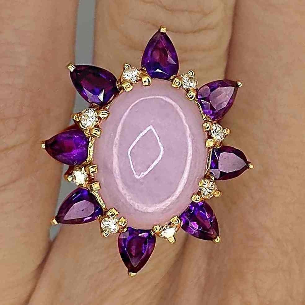 13.64 carats total gem weight - HUGE UNTREATED JADE AMETHYST DIAMOND SOLID 14K RING WITH GEM REPORT!