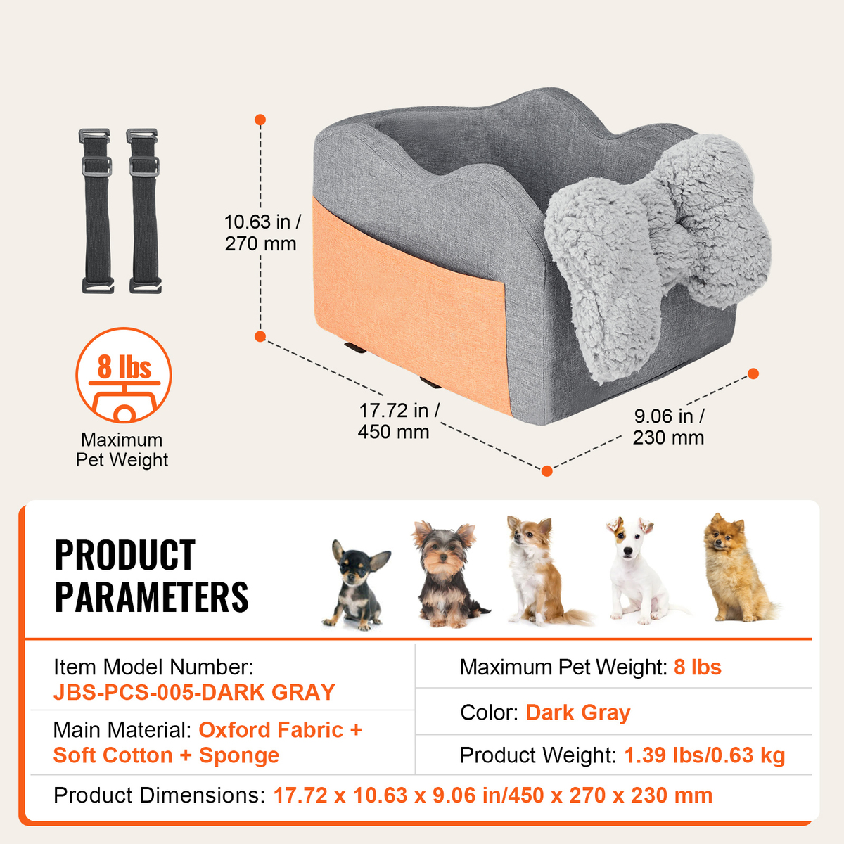 VEVOR Console Dog Car Seat, Center Dog Booster Seat for Small Dog, Dark Gray