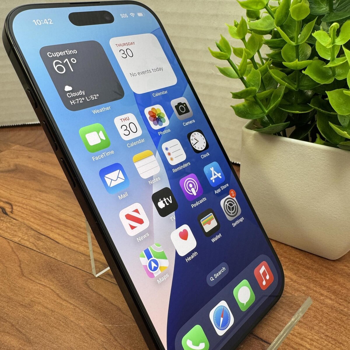 This Apple iPhone 16 Pro in sleek Titanium Black is ready to impress with its powerful CPU and stunning Super Retina display.