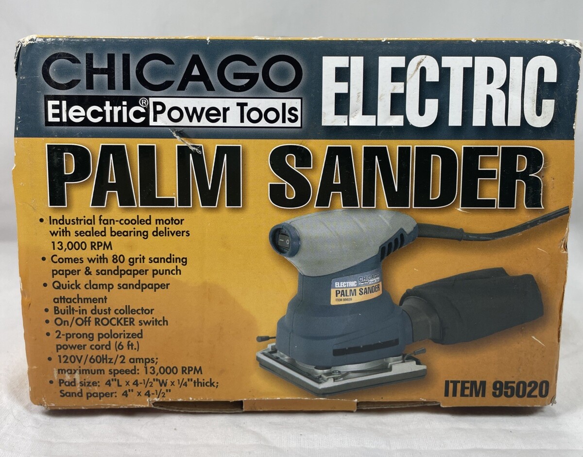 The Chicago Electric Palm Sander is a corded electric power tool that operates on 120 volts. This palm sander is designed for easy and efficient sanding tasks, making it a versatile tool for DIY projects and professional woodworking tasks. With the brand reputation of Chicago Electric Power Tools, you can trust in the quality and durability of this palm sander for your sanding needs.