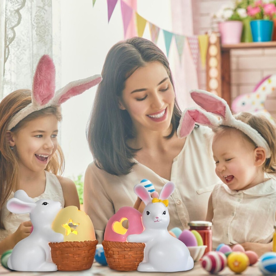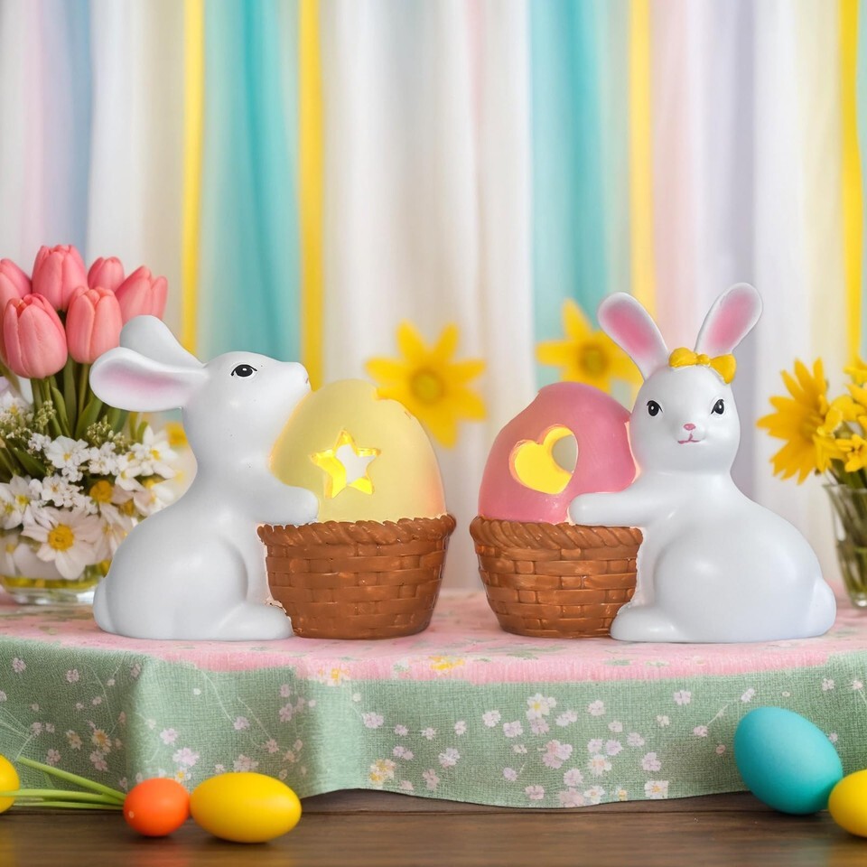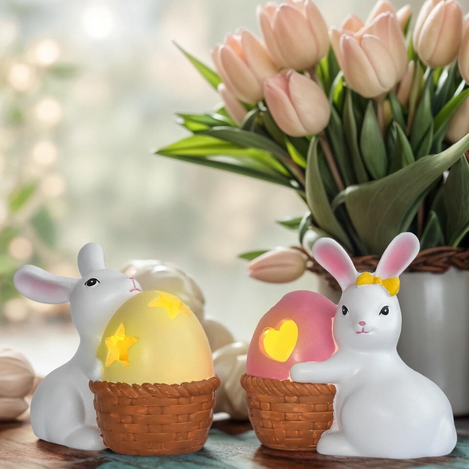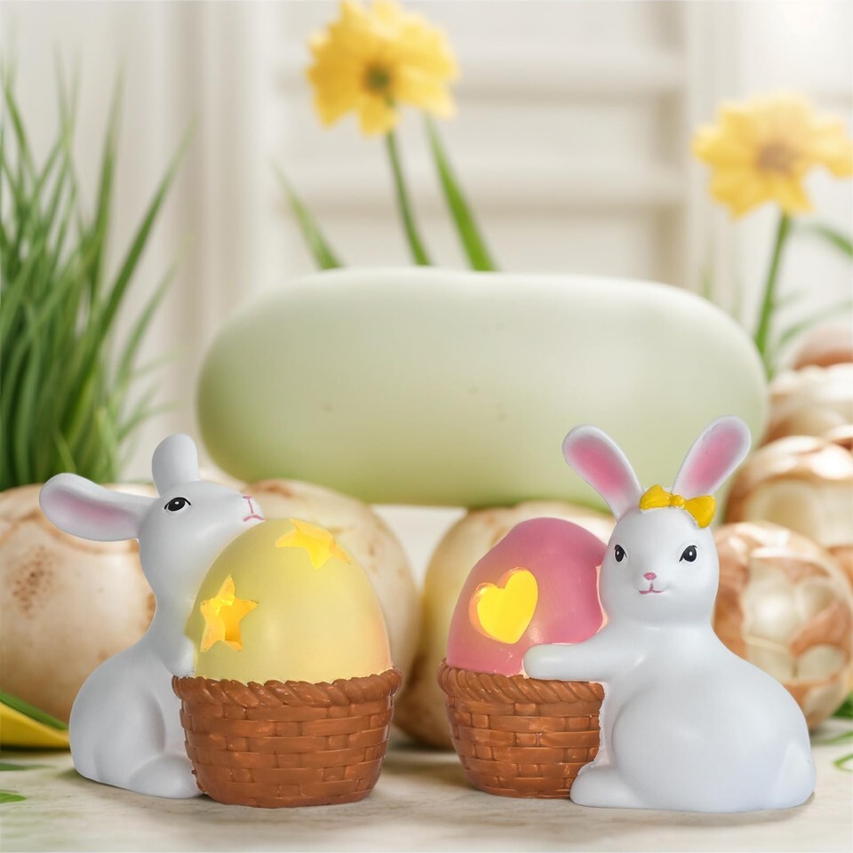 AMOYYT Easter Bunny Figurines Resin LED Rabbit Statue 4.5in Set of 2