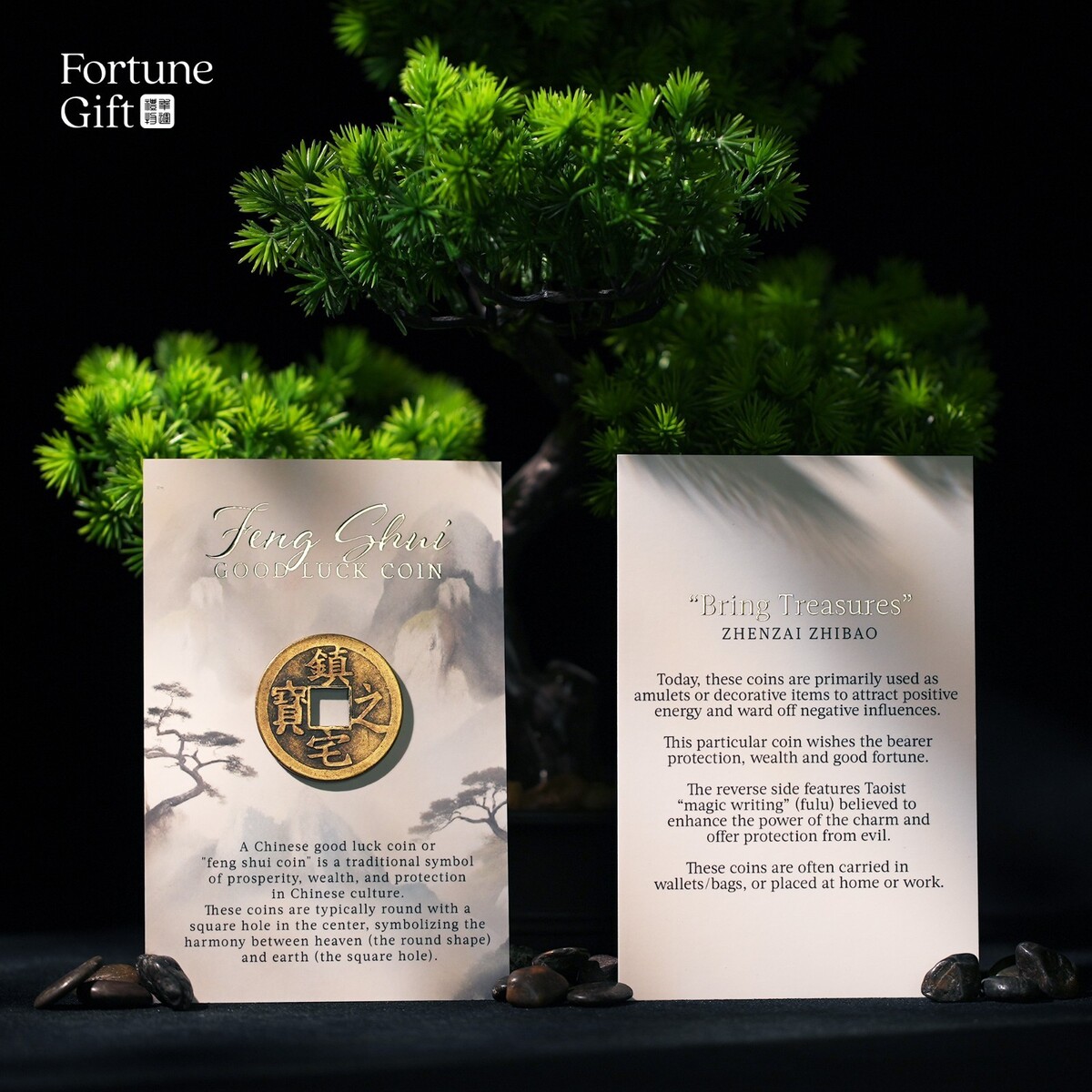 Fortune Gift has transformed these traditional coins into meaningful gifts, designed to be shared with positive intentions. Each gift includes a coin along with an information postcard that explains its significance and uses. With eight unique variations to choose from, every coin carries its own meaning and purpose. The coins can also be detached from the information postcard and placed anywhere you like.