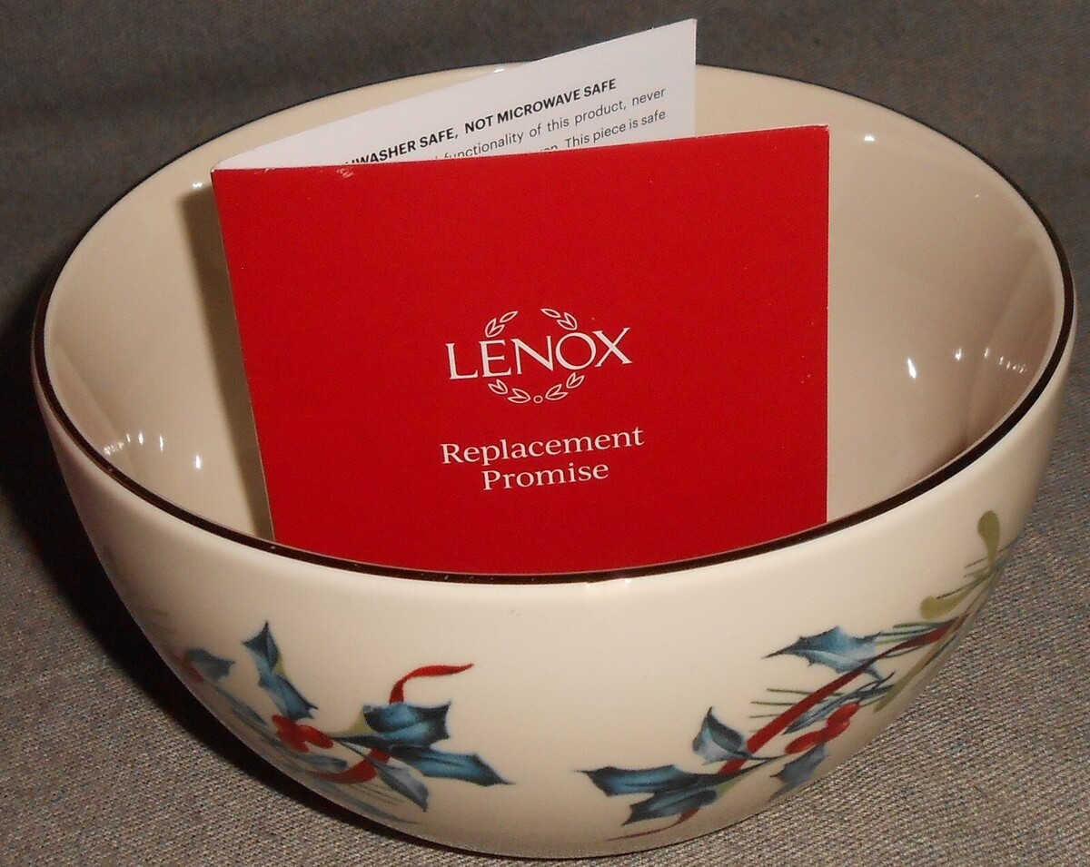 This is the 5 1/4" All Purpose Bowl from Lenox in the Winter Greetings Pattern with the Gold Trim that comes with the Original Box and has never been used. It is in good pre-owned condition with no damage.