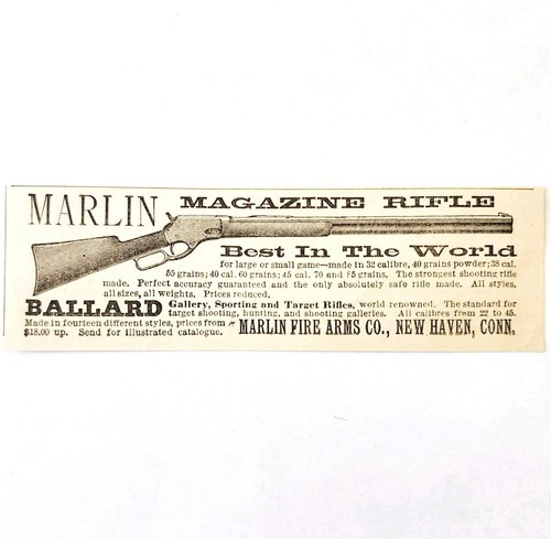 Marlin Repeating Rifle Guns 1885 Advertisement Victorian Firearms ADBN1A14