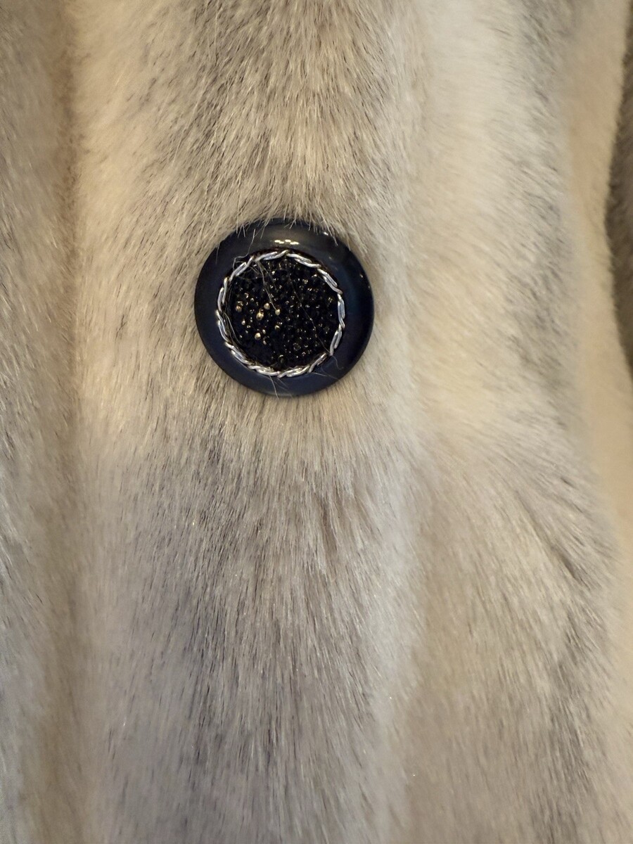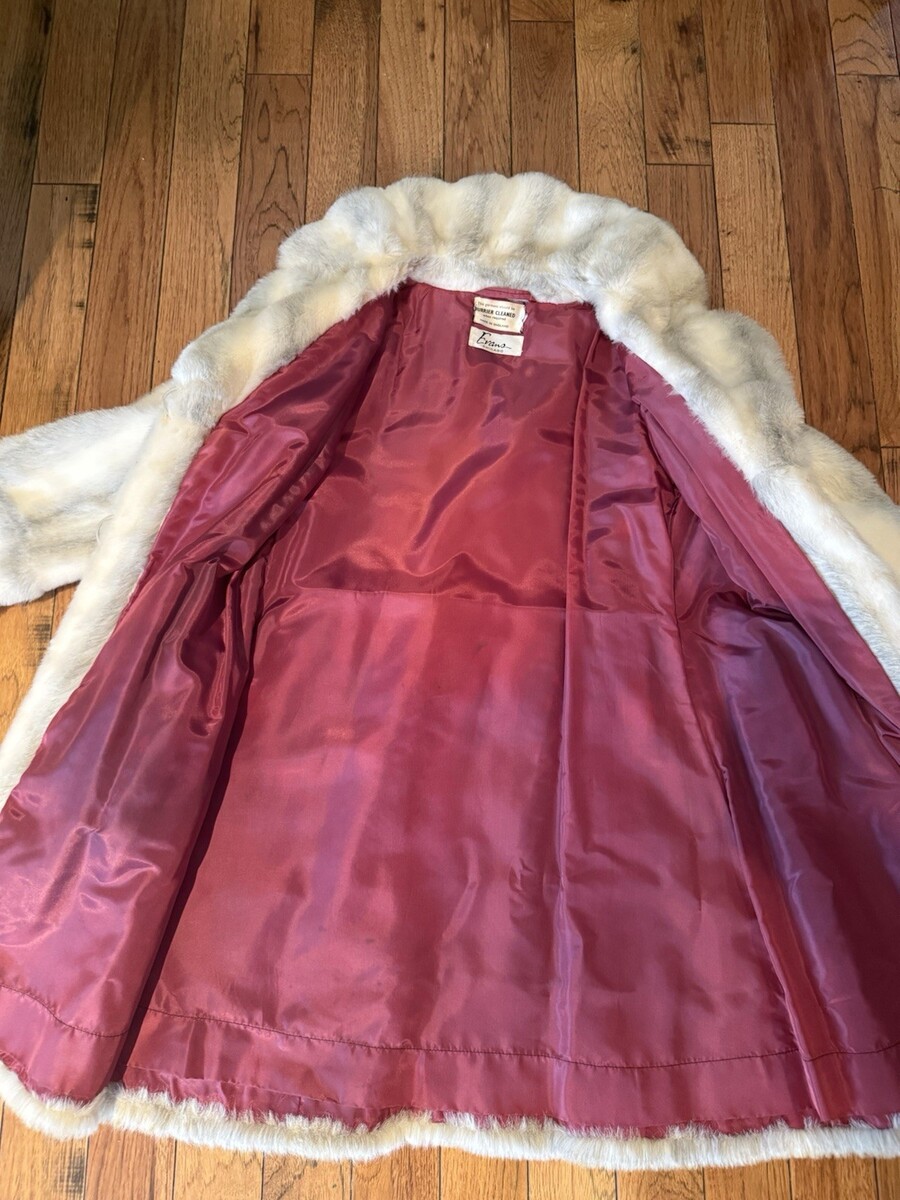 This Vintage Evans Chicago women's mink fur coat from the 1950s exudes old-world charm and sophistication. Made in England, this original ivory-colored coat features a classic style perfect for formal occasions. The high-quality mink fur adds a touch of luxury, making it an ideal piece for eveningwear. In a size 2XL, this coat is a timeless addition to any vintage clothing collection, showcasing the brand's craftsmanship and timeless appeal.
