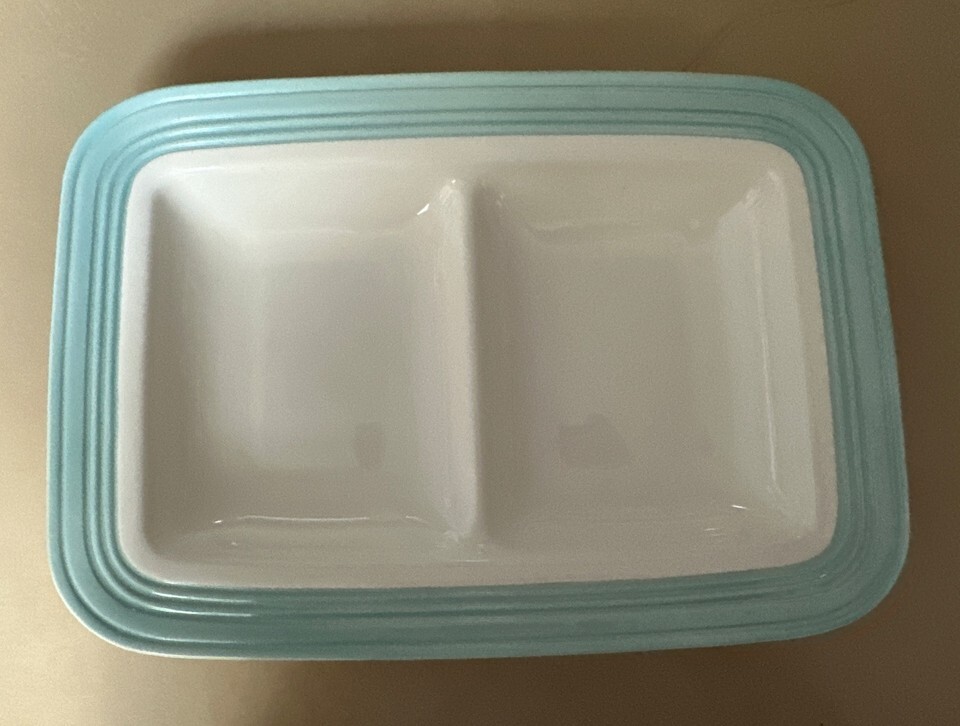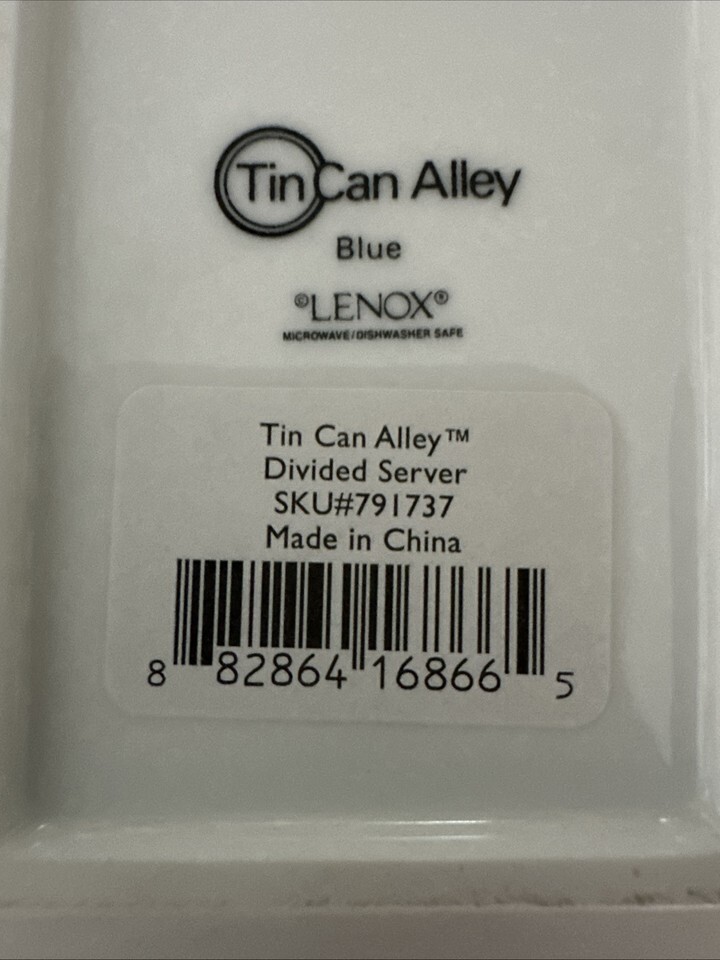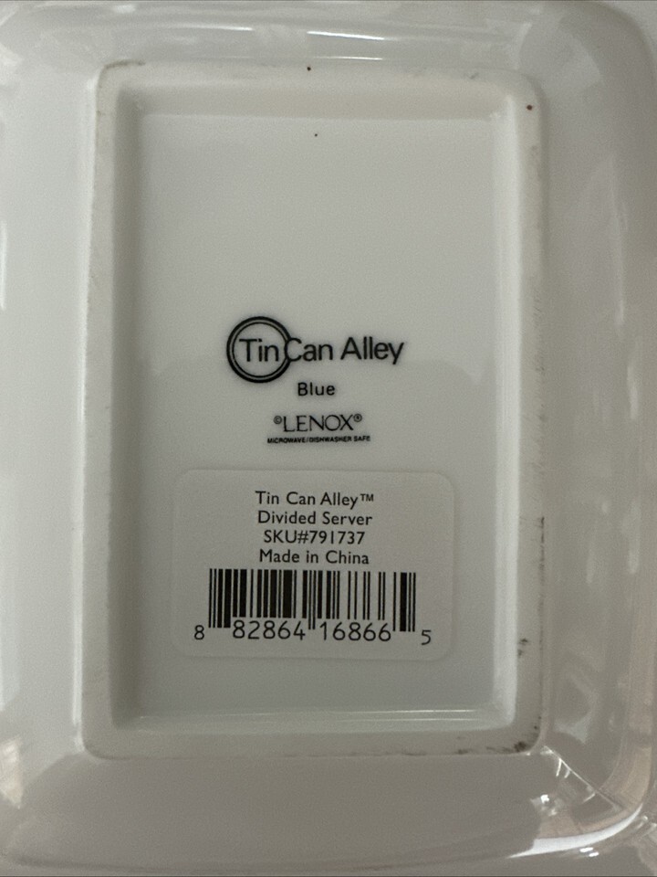 LENOX TIN CAN ALLEY 1pc SQUARE 2 SECTION 12.75” WHITE/BLUE DISH SERVER NWT