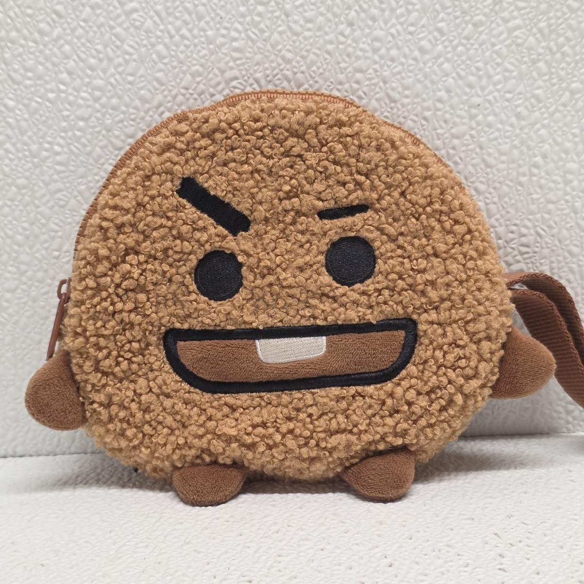 Line Friends BT21 Shooky Boucle Plush Purse Wristlet. Images show actual item that will ship.