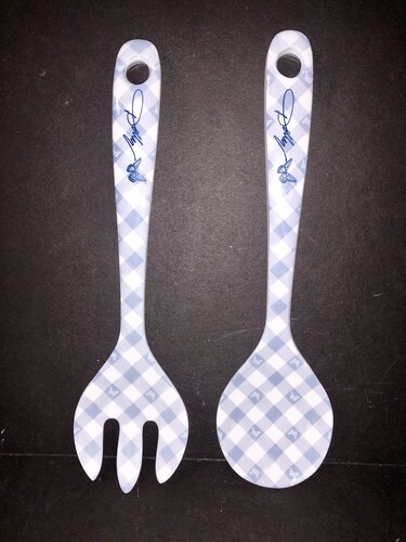 Dolly Parton Blue Checkered Gingham Melamine Salad Serving Fork and Spoon Set