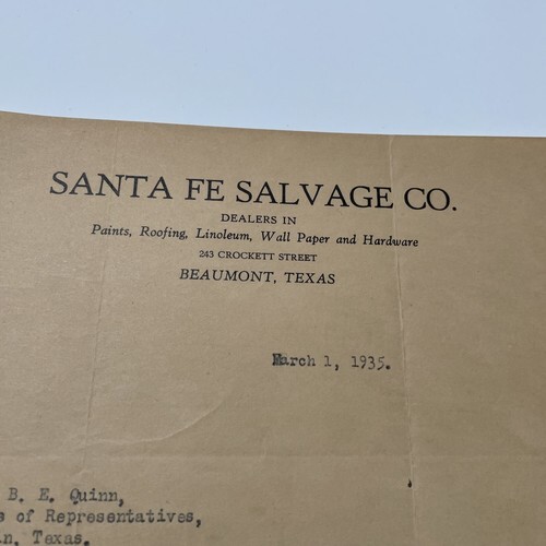 Santa Fe Salvage Company Letter Beaumont Tx 1935