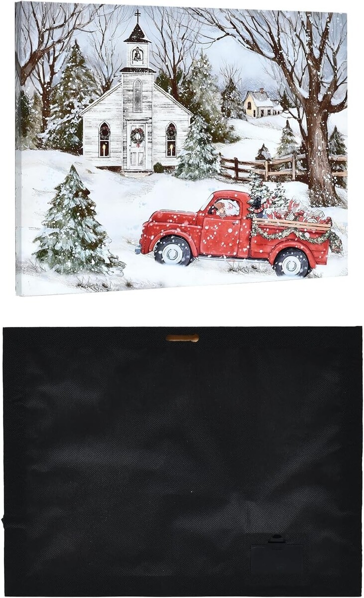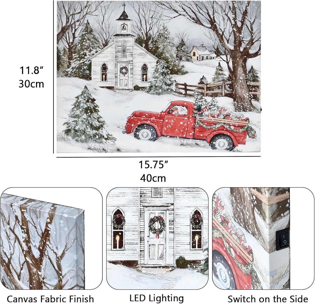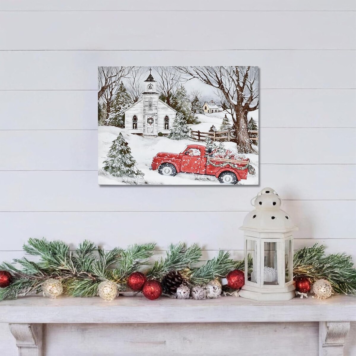 SwallowLiving 12" x 16" LED Christmas Canvas Prints Wall Art, Red Truck