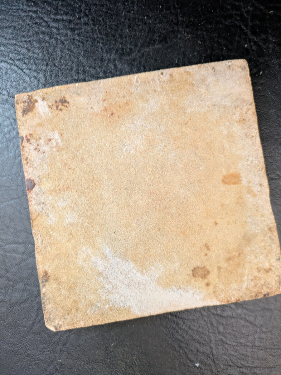 Antique Dutch Polychrome Tile Man Walking Stick Hat Backpack Crazed