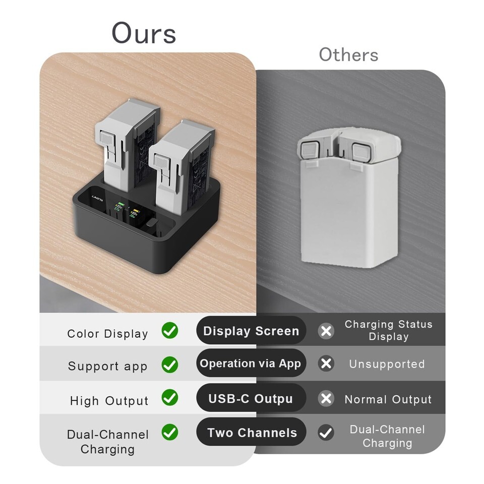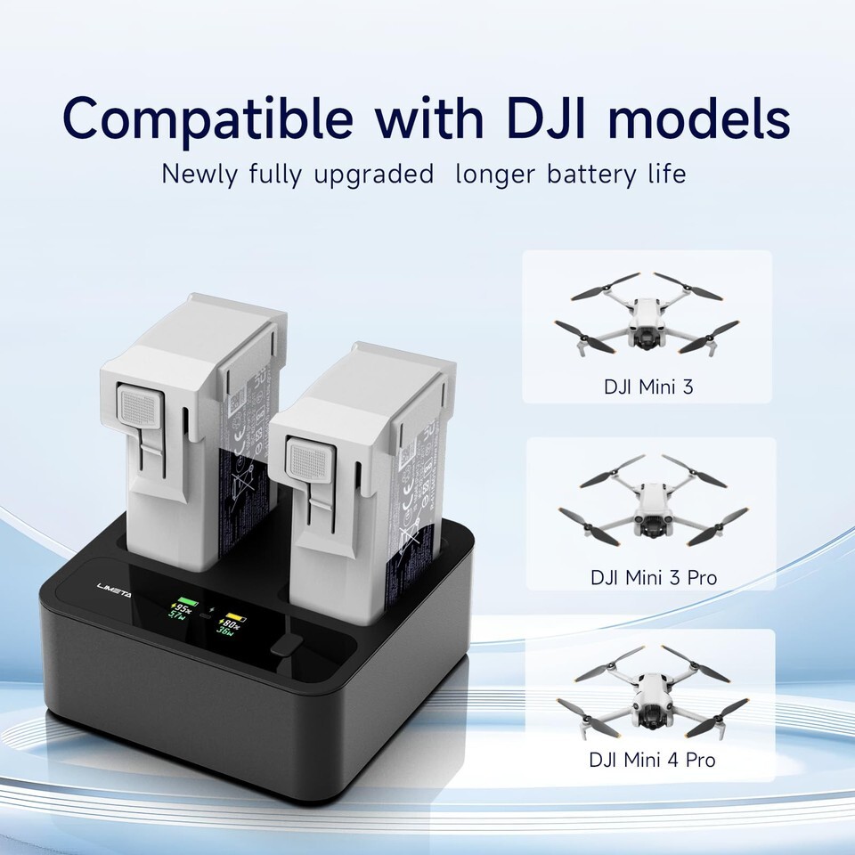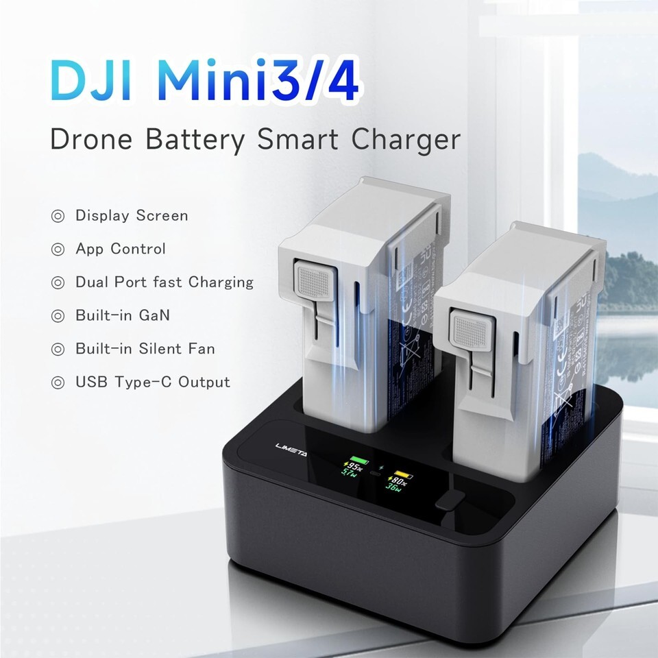 Dual - Port High - Speed Charging Equipped with 36W + 36W dual - channel parallel fast charging, the MC234AC charger can juice up two DJI Mini 3/Mini 3 Pro/Mini 4 Pro drone batteries simultaneously. 72W total power ensures rapid replenishment, minimizing waiting time for your next flight exploration.