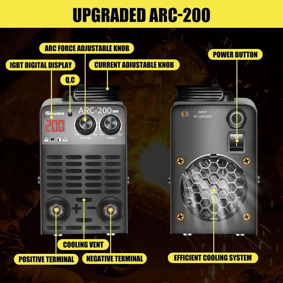 Soldador experto de doble voltaje: funciona en cualquier lugar: cambia sin problemas entre tomas de corriente domestica de 110 V y 220 V de potencia en el lugar de trabajo. Este mini soldador ARC200 es perfecto para trabajos de metal de bricolaje, mantenimiento del hogar, reparaciones de automoviles, soldadura de construccion, soldadura de tuberรญas y otros lugares de trabajo profesionales.