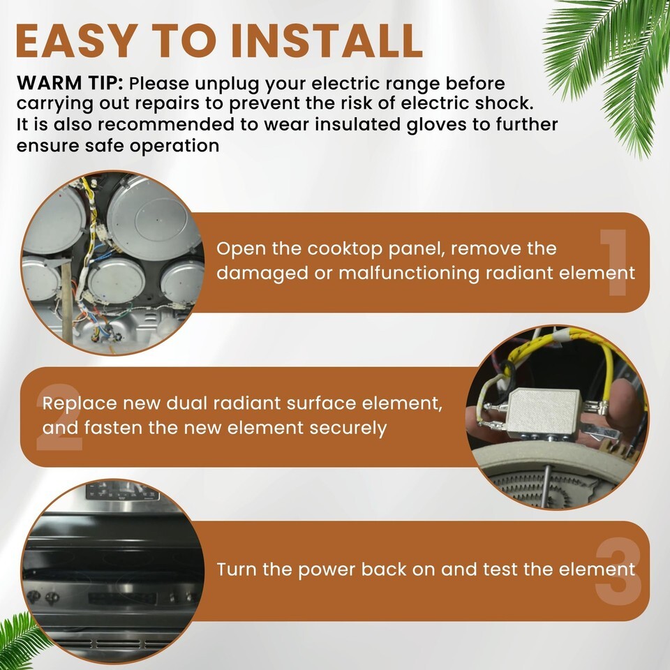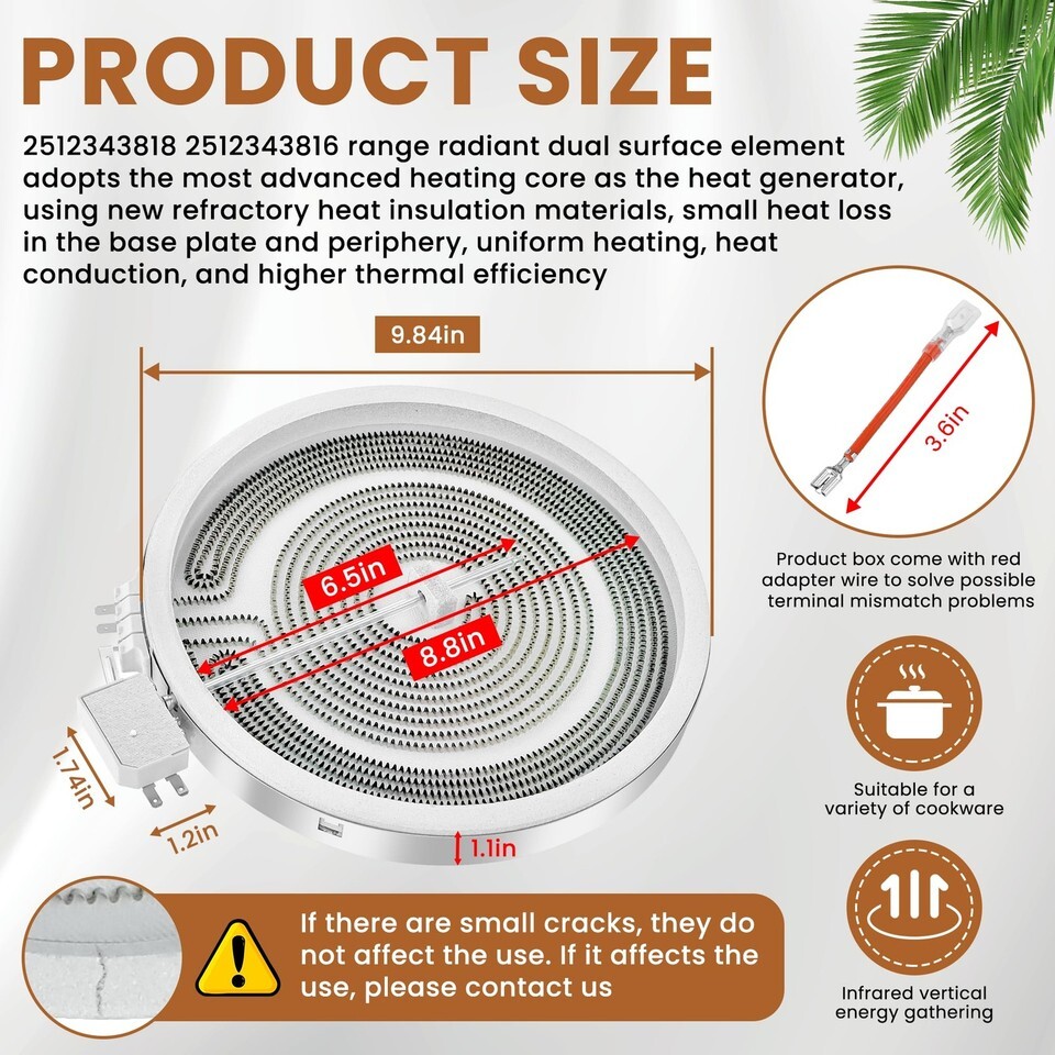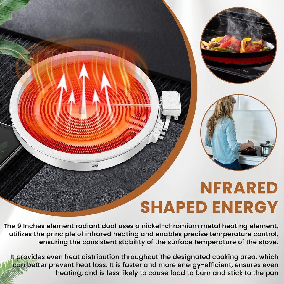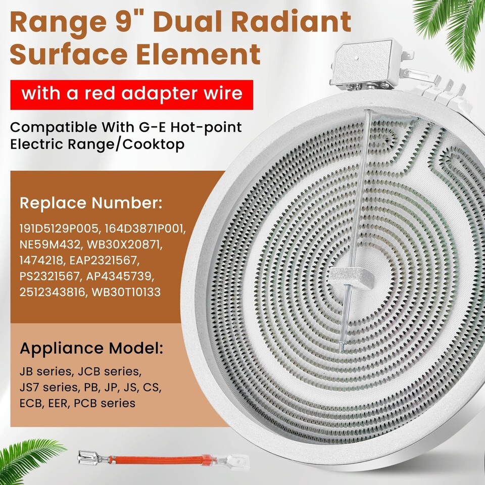 Electric Range 9" Dual Radiant Element for GE JB645DK5BB JB645DK4WW JB645DK5WW