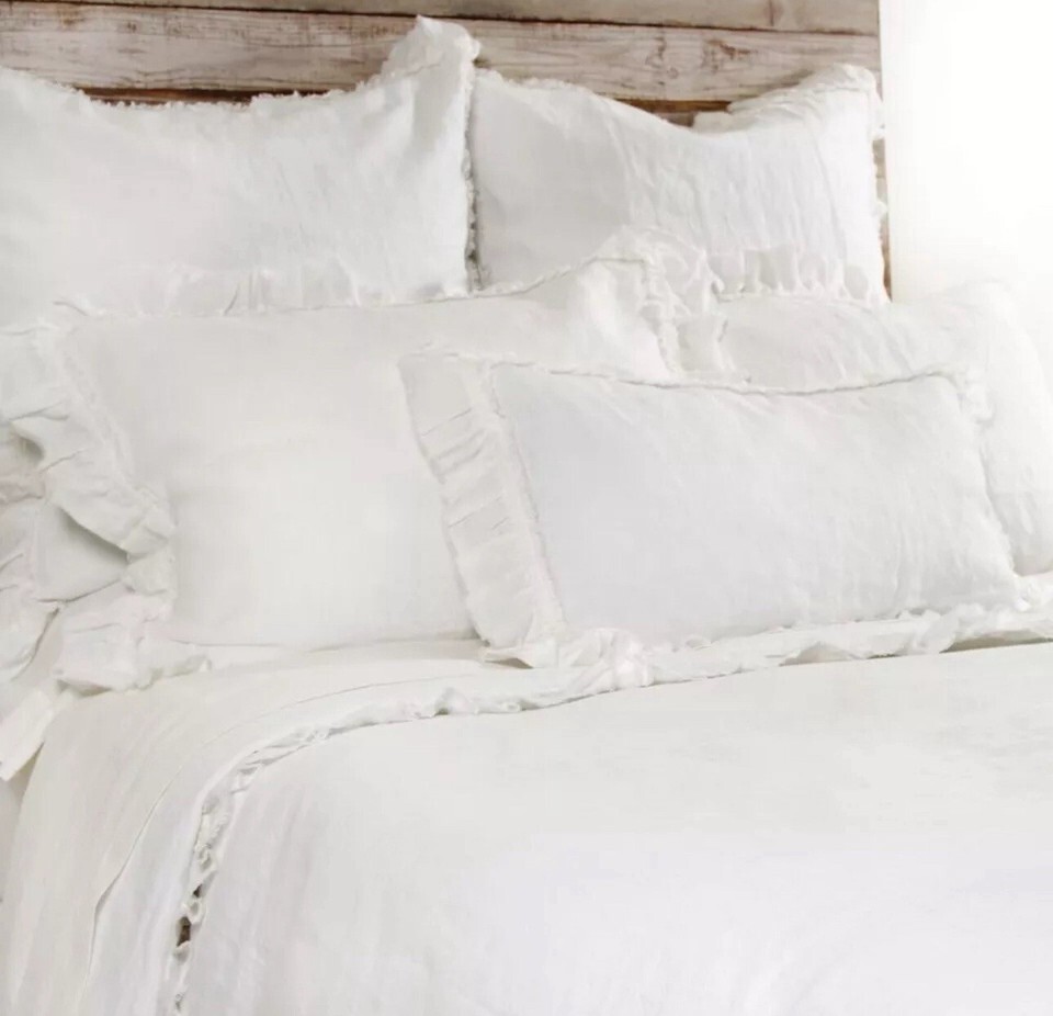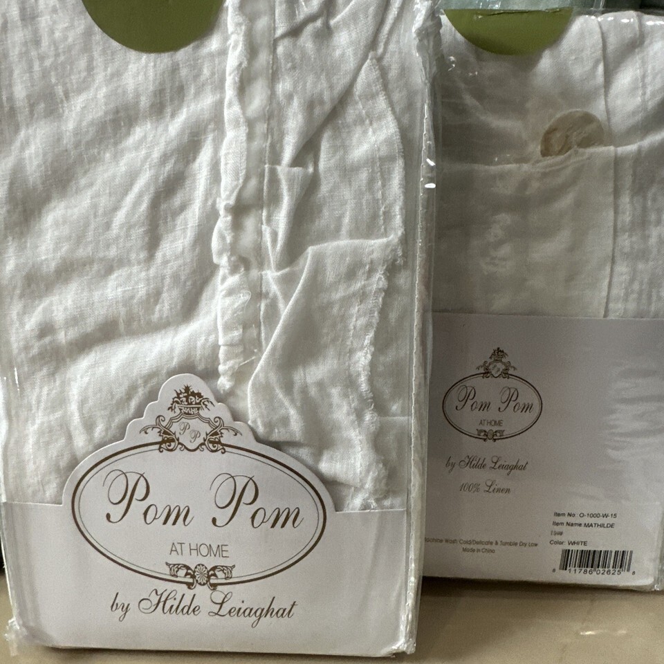 POM POM AT HOME HILDE LEIAGHAT MATHILDE 2pc EURO SHAMS LINEN WHITE NIP $260