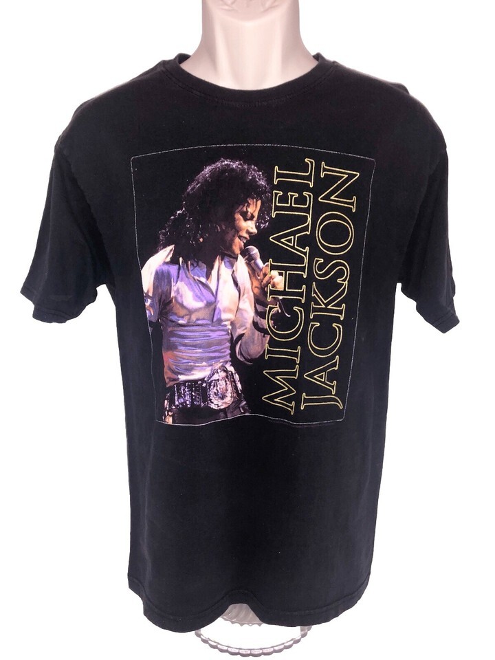 Celebrate your love for the King of Pop with this stylish Michael Jackson men's t-shirt. Crafted from soft, breathable cotton, this medium-sized, black tee features a comfortable crew neck and short sleeves, making it an ideal choice for fans looking to showcase their admiration in true music style.
