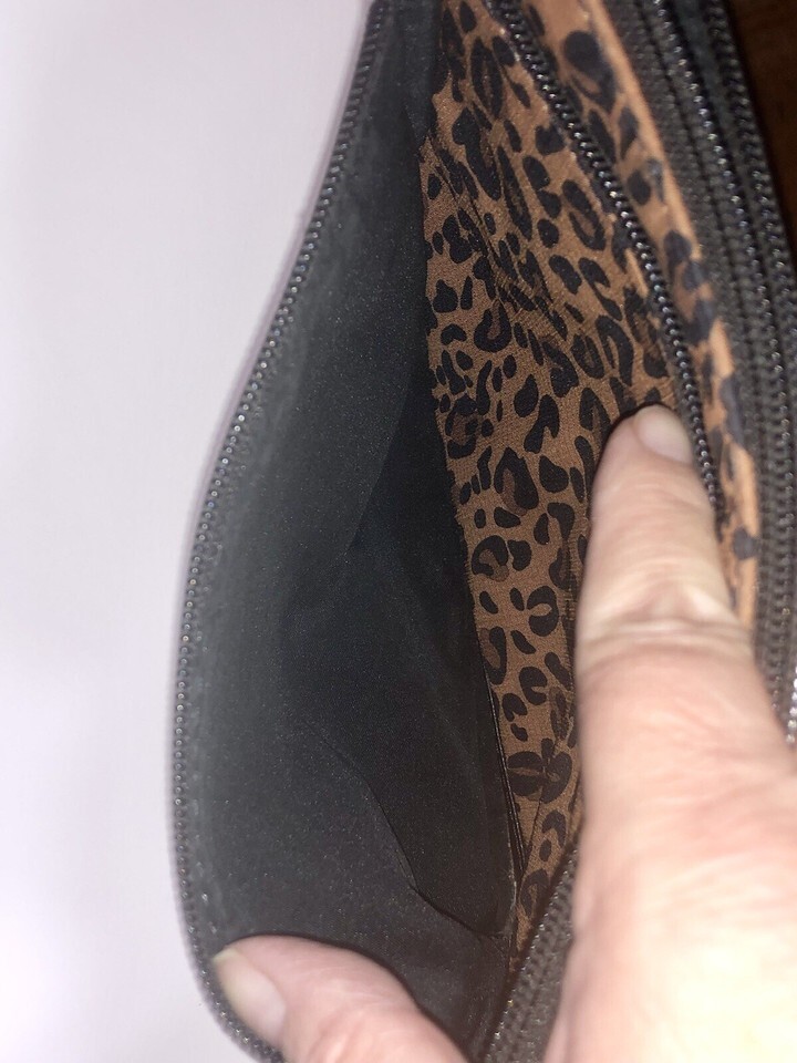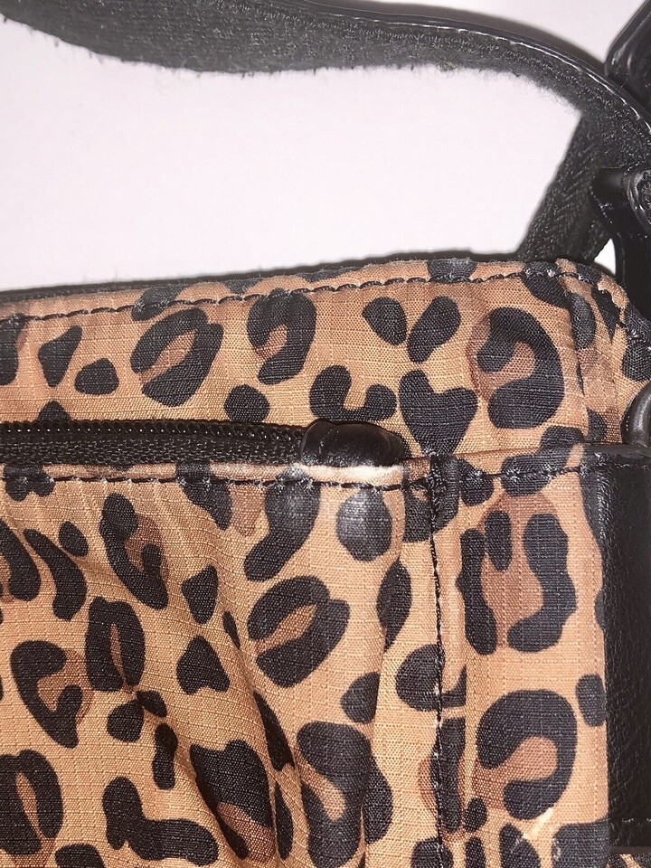 Fossil Jenna Cheetah Purse Nylon Crossbody Shoulder Bag Brown Black Print Nice