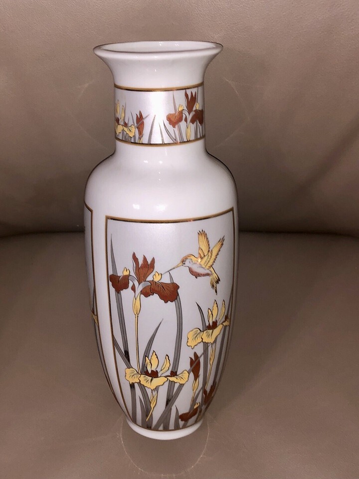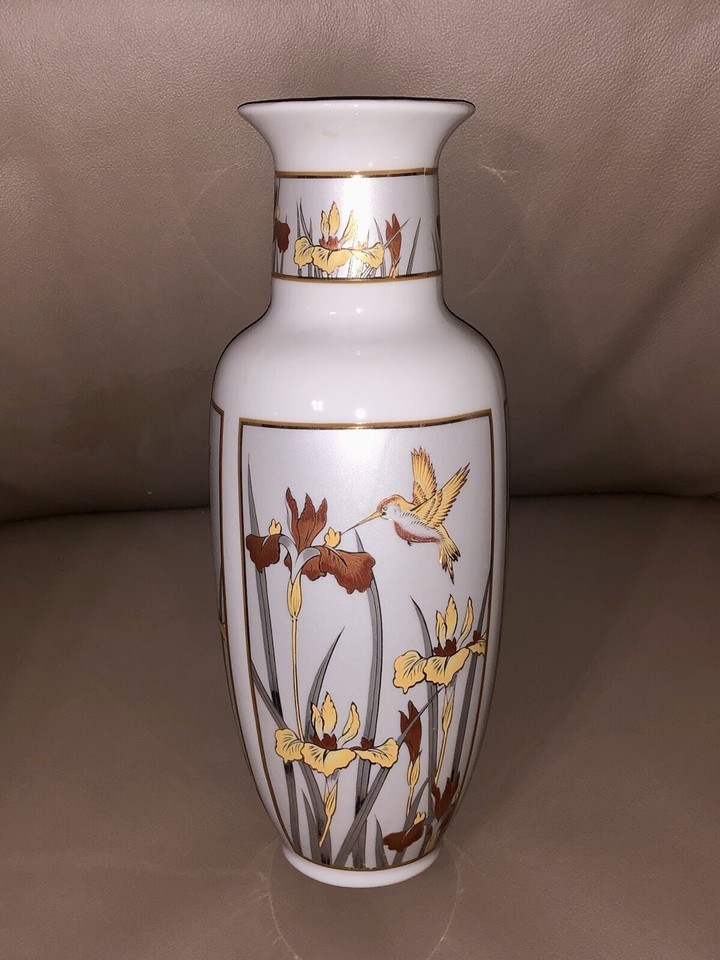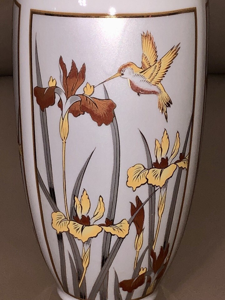 Vintage Japan Art Of Chokin Hummingbird Floral Vase 24k Gold Trim Japan 11” Tall