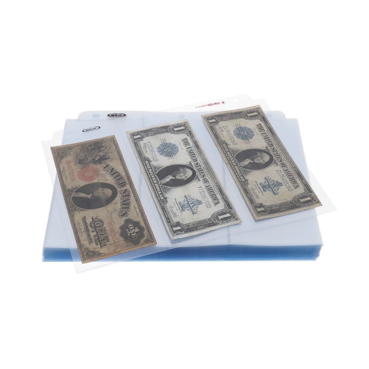 1 pack of 100 BCW LaserWeld 3-Pocket Currency Pages