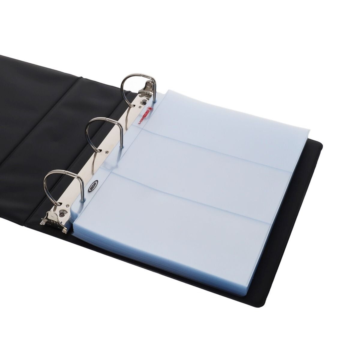 Our LaserWeld 3-Pocket Currency pages are a premium product that are head and shoulders above any other poly pages available on the market today. As the name suggests, these pages are manufactured using our patented laser-welding process. This gives a finer weld line compared to standard hot press or sonic welding while also being stronger. Thinner lines also put more focus on your currency and dollar bills, making them aesthetically superior as well. LaserWeld pages sit flat and smooth. Other methods can make the material wavy or curved. This helps to minimize glare and pillowing, making displays and photos more attractive. The flatness of the pages will also let you fit more in a 3-ring binder or album. This allows you to use smaller binders to hold your collection, or let larger ones hold even more!