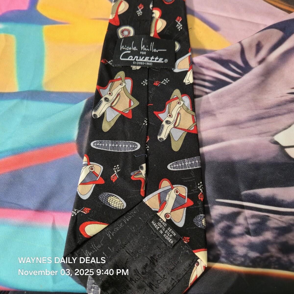 Nicole Miller Corvette Tie C1 1955-1962 Classic Car Racing Silk Necktie 56x4 . Condition is Pre-owned - Good. Shipped with USPS Ground Advantage.