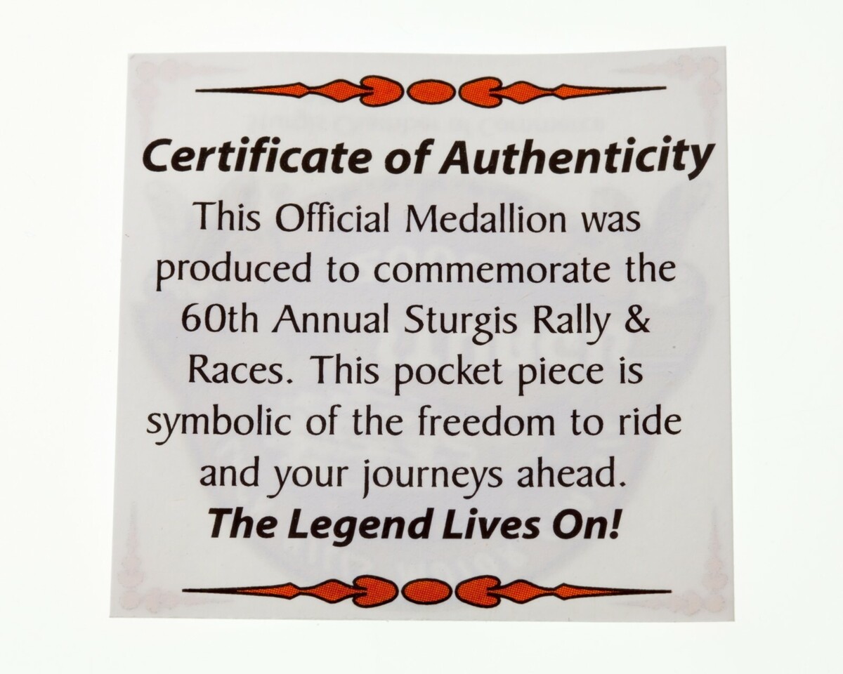 Medallon Conmemorativo Del 60 Aniversario Del Rally Y Carreras De Sturgis 2000