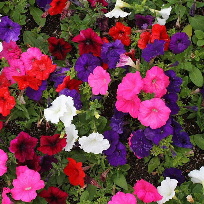 Dwarf Petunia Mix (Petunia nana compacta) is an excellent choice for growing in hanging baskets, containers, or mass planting. This annual is a multicolor mix with colors of red, purple, lavender, pink, and white.
