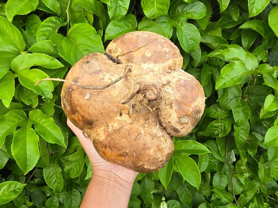 Thai Jicama (Pachyrhizus erosus), also known as Yam Bean, Chinese Potato, Bang Kuang, or Singu Bean, is closely related to True Jicama but distinguished by its adaptation to the hot, humid climates of Southeast Asia. Like its Mexican cousin, it produces edible, crisp white-fleshed tubers with a mild, refreshing sweetness, though roots are often smaller and sometimes starchier than those of True Jicama. Most notable for its versatility in both raw and cooked dishes, Thai Jicama shares the same biennial vining growth habit and toxic seeds and pods, but remains valued across Asian cuisines for its adaptability and refreshing flavor