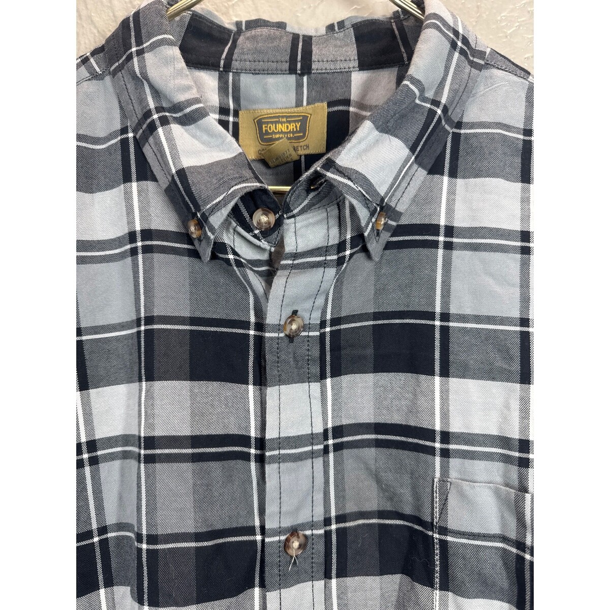 The Foundry Mens Comfort Stretch Button-Front Long Sleeve Plaid Shirt Size 2XL