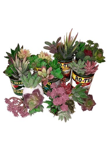 33 Faux Succulent Potted Plants In Cans Fiesta Party Cinco De Mayo Table Decorรฉ