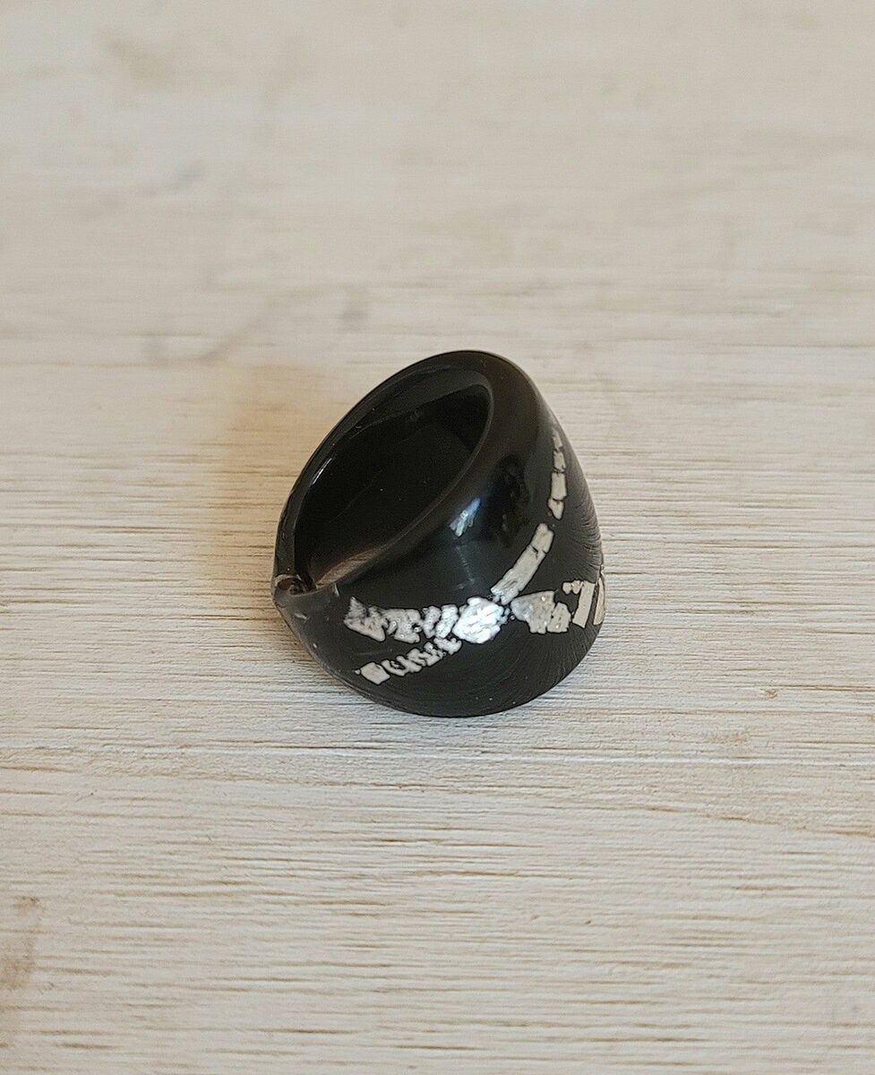 Acrylic Chic Black Art Deco Ring Size 7/8