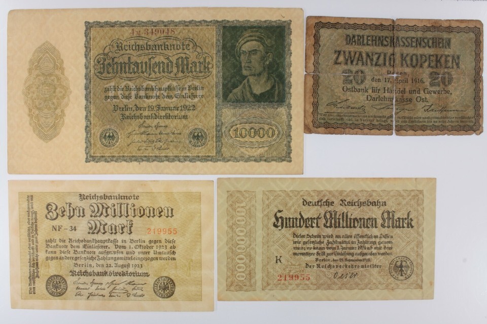 1916-1923 Germany 4-Notes Currency Set // Weimar Republic // German Empire